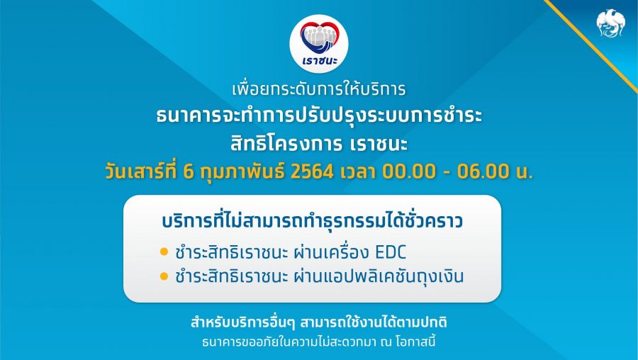 กร งไทย แจ งป ดระบบช วคราว ปร บปร งระบบชำระ เราชนะ